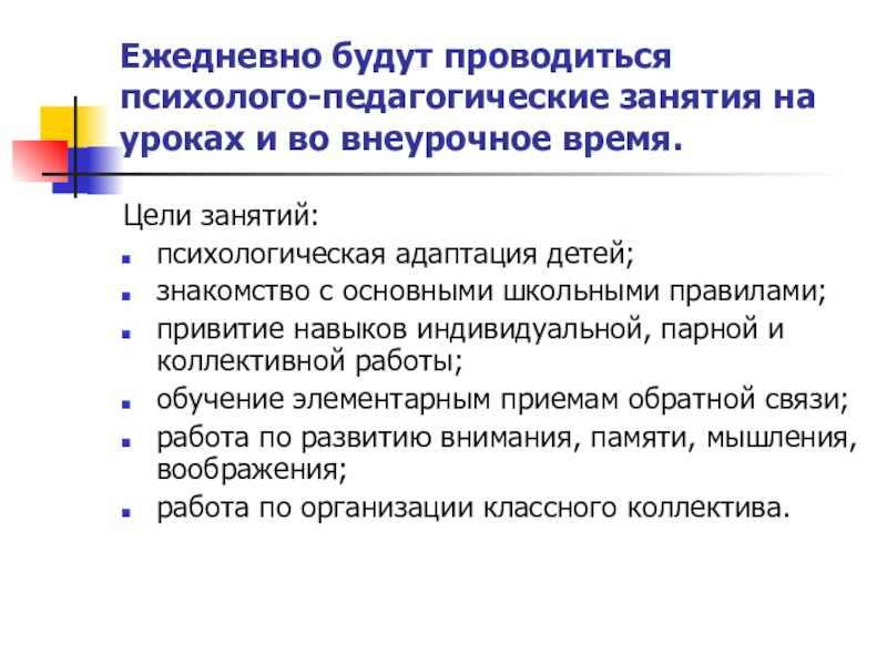 Слайд 37Ежедневно будут проводиться психолого-педагогические занятия на уроках и во внеурочное время.