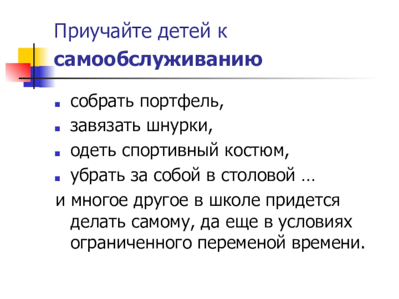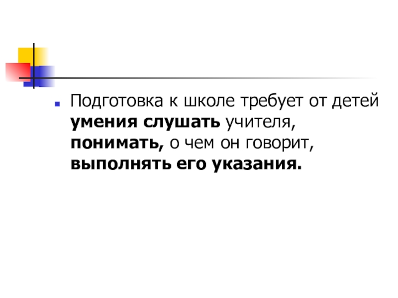 Слайд 24Подготовка к школе требует от детей умения слушать учителя, понимать, о