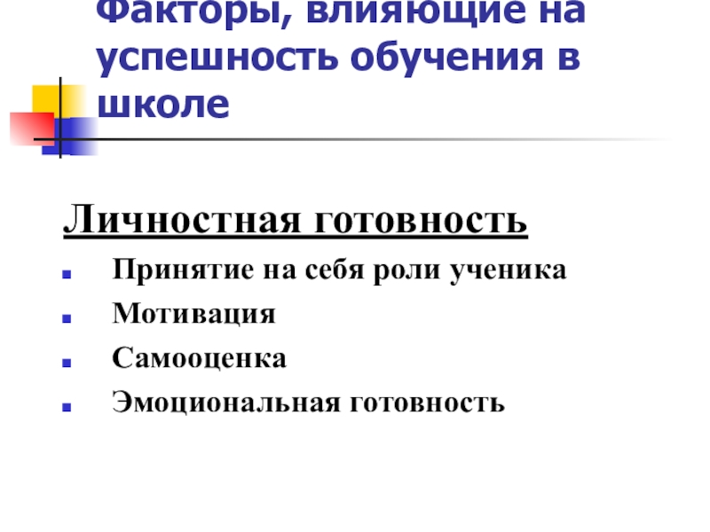Слайд 20Факторы, влияющие на успешность обучения в школе
