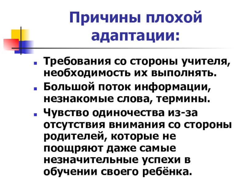 Чувство одиночества из-за отсутствия внимания со стороны родителей, которые не поощряют даже самые незначительные успехи в обучении своего ребёнка.
