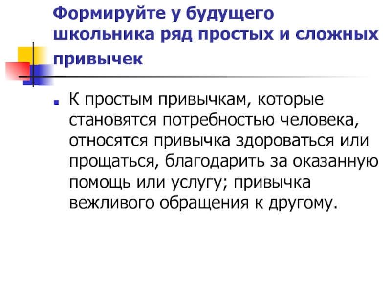 Слайд 30Формируйте у будущего школьника ряд простых и сложных привычек