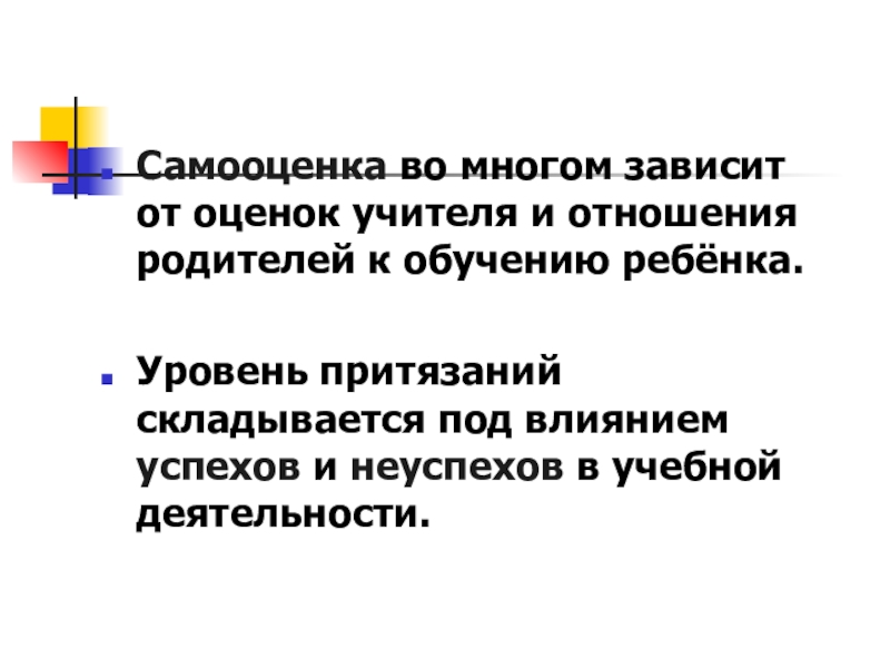 Слайд 13Самооценка во многом зависит от оценок учителя и отношения родителей к