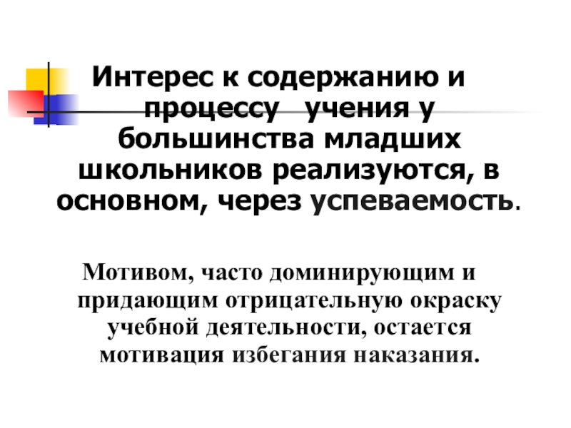 Мотивом, часто доминирующим и придающим отрицательную окраску учебной деятельности, остается мотивация избегания наказания.
