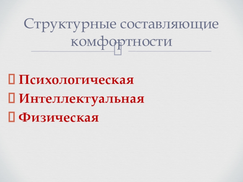 Психологическая Интеллектуальная Физическая Структурные составляющие комфортности