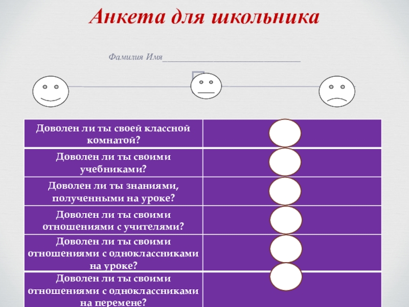 Слайд 10 Анкета для школьника Фамилия Имя______________________________