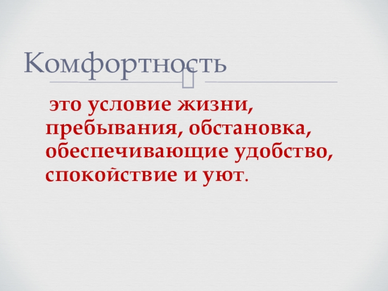 Слайд 2 это условие жизни, пребывания, обстановка, обеспечивающие удобство, спокойствие и уют.