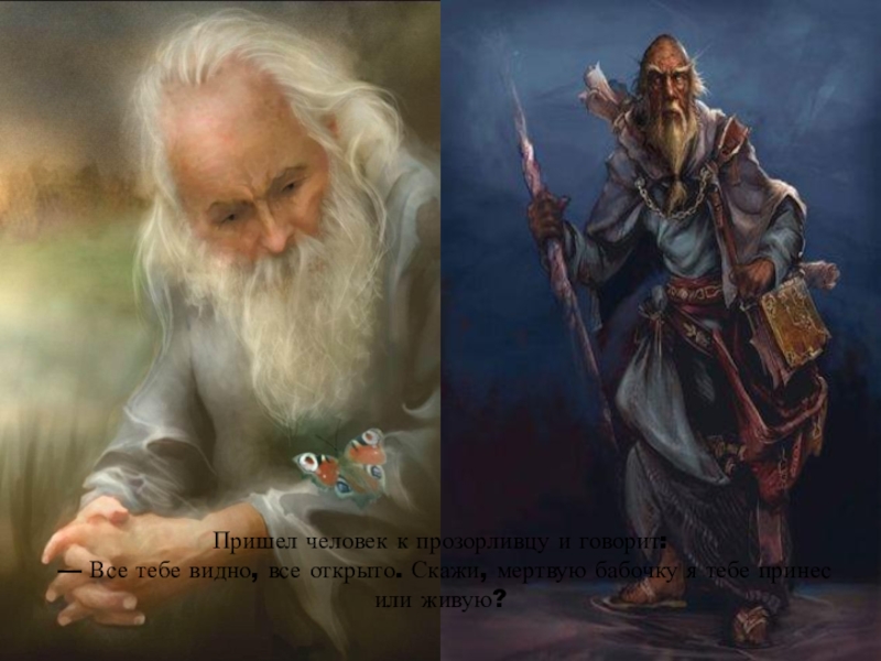 Пришел человек к прозорливцу и говорит: — Все тебе видно, все открыто. Скажи, мертвую бабочку я тебе