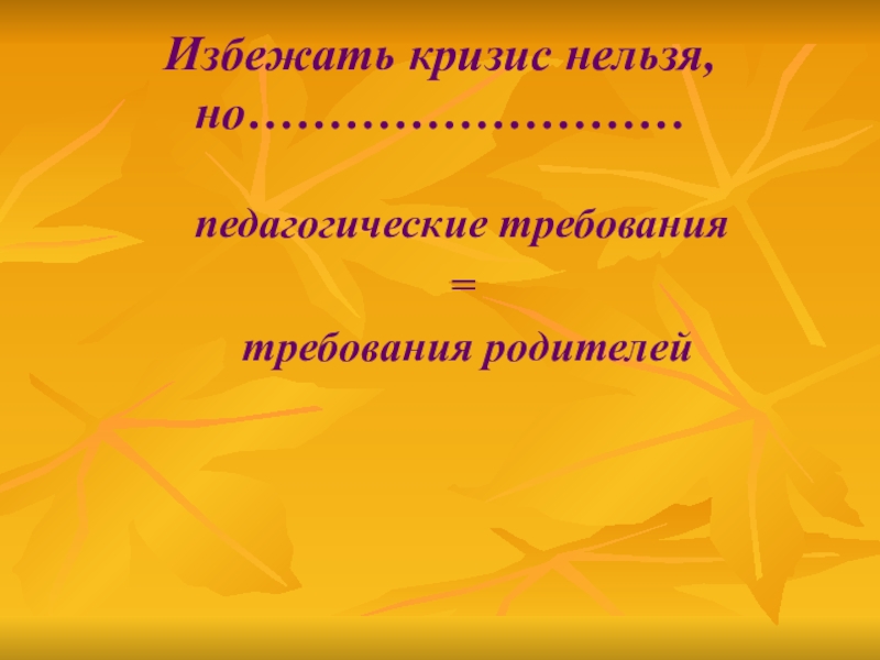 Избежать кризис нельзя, но………………………педагогические требования = требования родителей