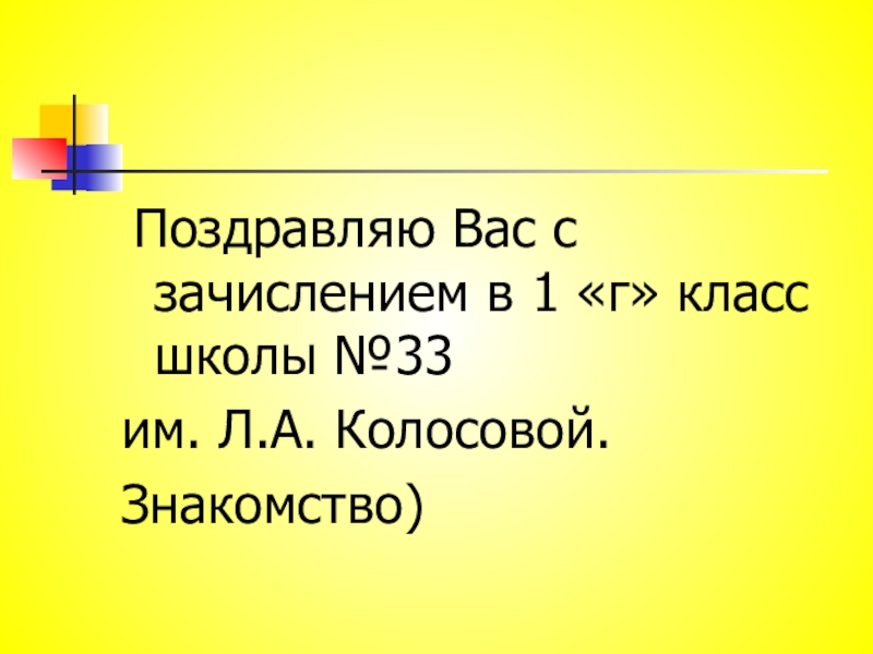 Поздравляю Вас с зачислением в 1 «г» класс школы №33