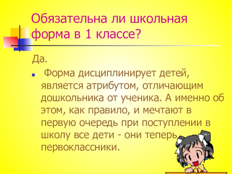 Слайд 16Обязательна ли школьная форма в 1 классе?