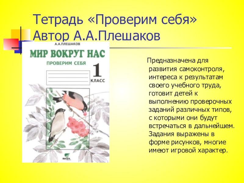 результатам своего учебного труда, готовит детей к выполнению проверочных заданий различных типов, с которыми они будут встречаться в дальнейшем. Задания выражены в форме рисунков, многие имеют игровой характер.
