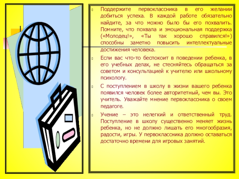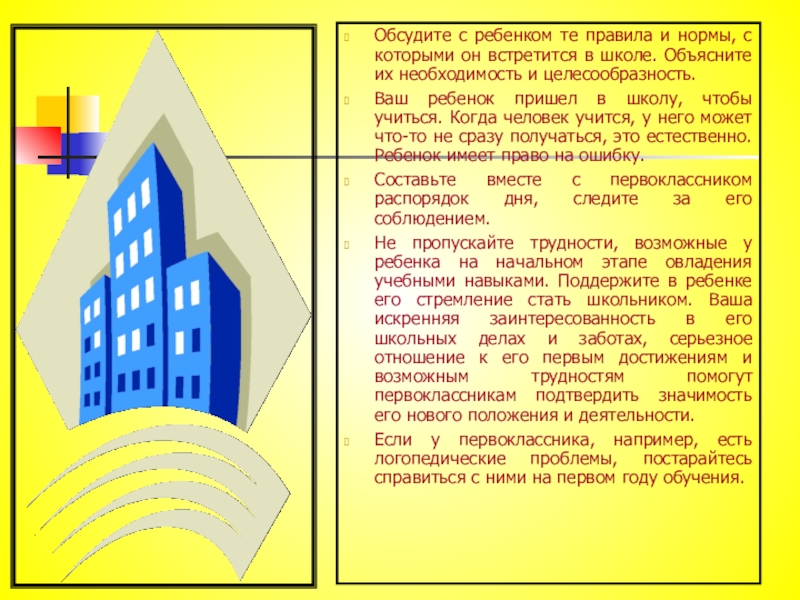 Слайд 3Родителям первоклассников (правила, советы, рекомендации).
