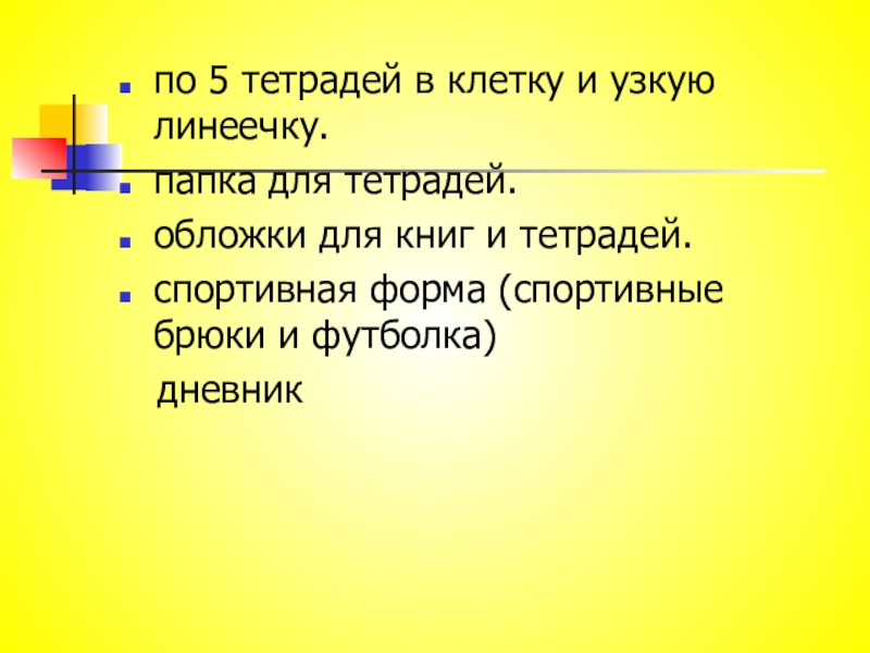 Слайд 61по 5 тетрадей в клетку и узкую линеечку.