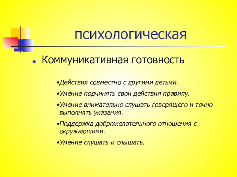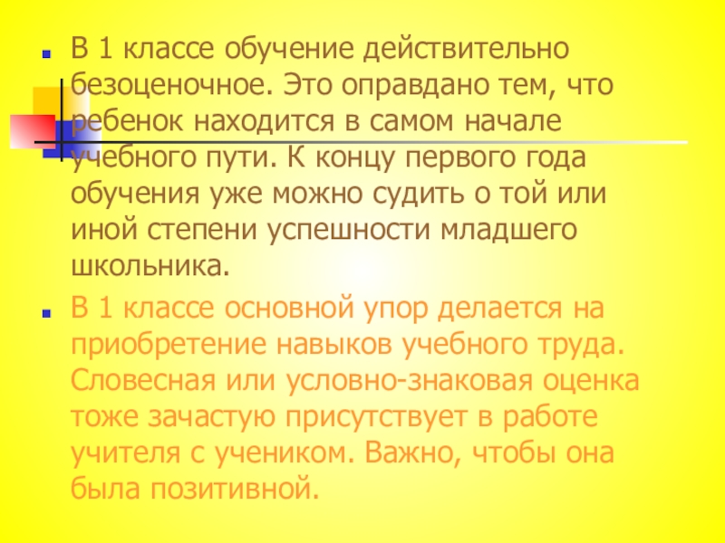 отношению к школе и учению. Такая позиция должна сделать поступление в школу радостно ожидаемым событием, вызвать положительное отношение к предстоящему учению с другими ребятами в школе и сделать само учение радостным и интересным занятием.