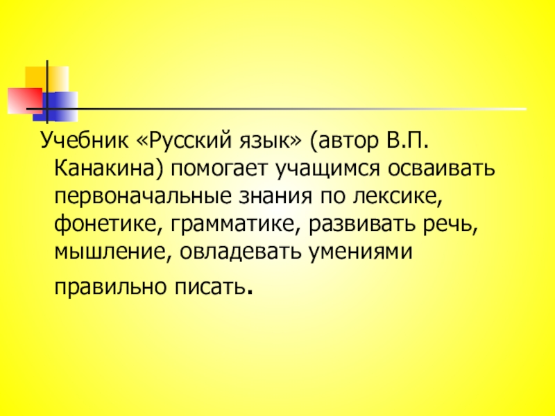 Учебник «Русский язык» (автор В.П.Канакина) помогает учащимся