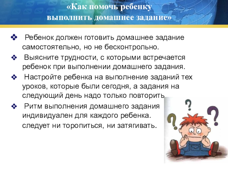 Выясните трудности, с которыми встречается ребенок при выполнении домашнего задания.