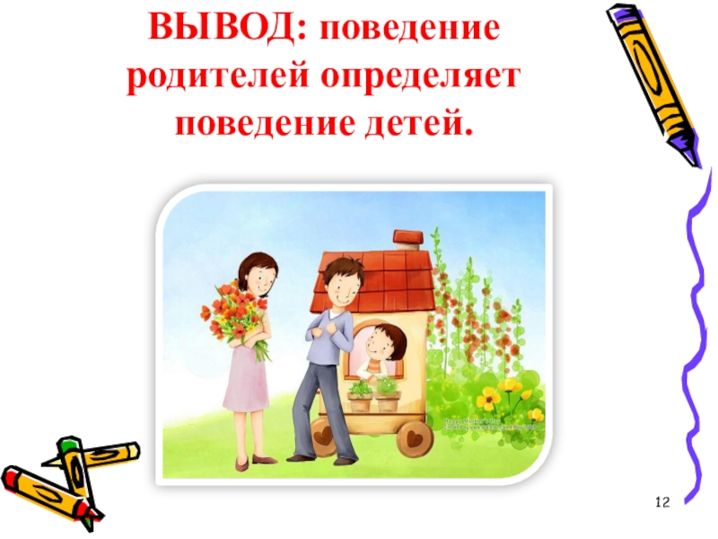Слайд 12ВЫВОД: поведение родителей определяет поведение детей.