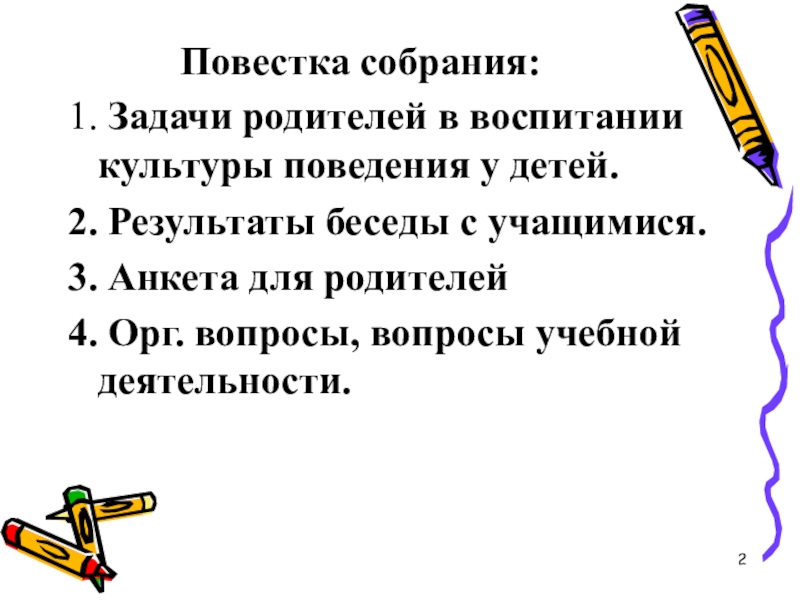 1. Задачи родителей в воспитании культуры поведения у детей.