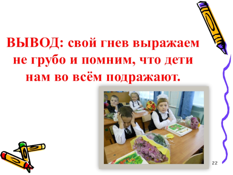 Слайд 22ВЫВОД: свой гнев выражаем не грубо и помним, что дети нам