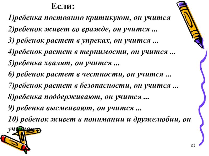 10) ребенок живет в понимании и дружелюбии, он учится ...