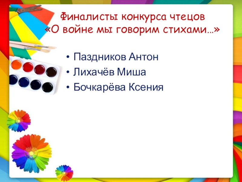 Это сайт презентаций, где можно хранить и обмениваться своими презентациями, докладами, проектами, шаблонами в формате PowerPoint с другими пользователями. Мы помогаем школьникам, студентам, учителям, преподавателям хранить и обмениваться учебными материалами.