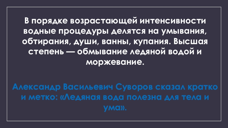 Александр Васильевич Суворов сказал кратко и метко: «Ледяная вода полезна для тела и ума».