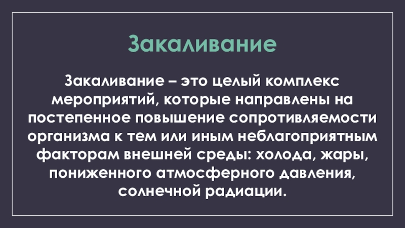 Закаливание – это целый комплекс мероприятий, которые направлены на постепенное повышение