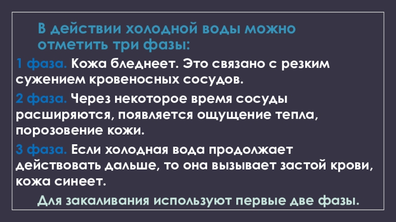 Слайд 12В действии холодной воды можно отметить три фазы: