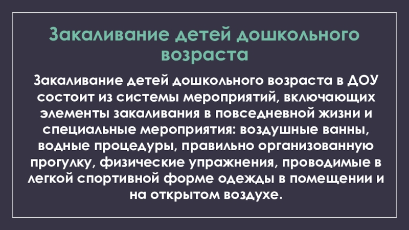 Закаливание детей дошкольного возраста в ДОУ состоит