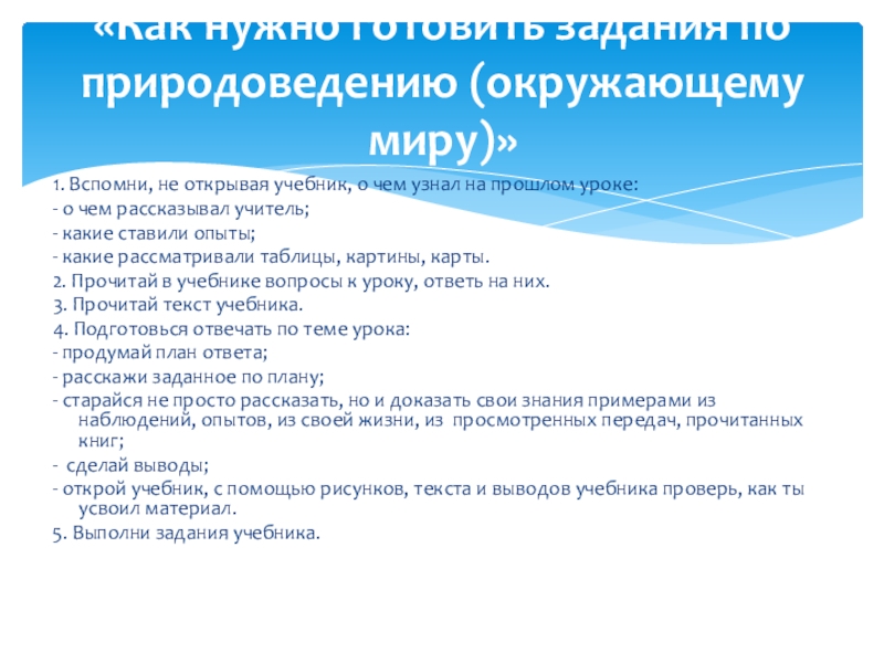 «Как нужно готовить задания по природоведению (окружающему миру)»