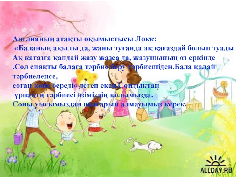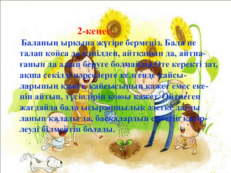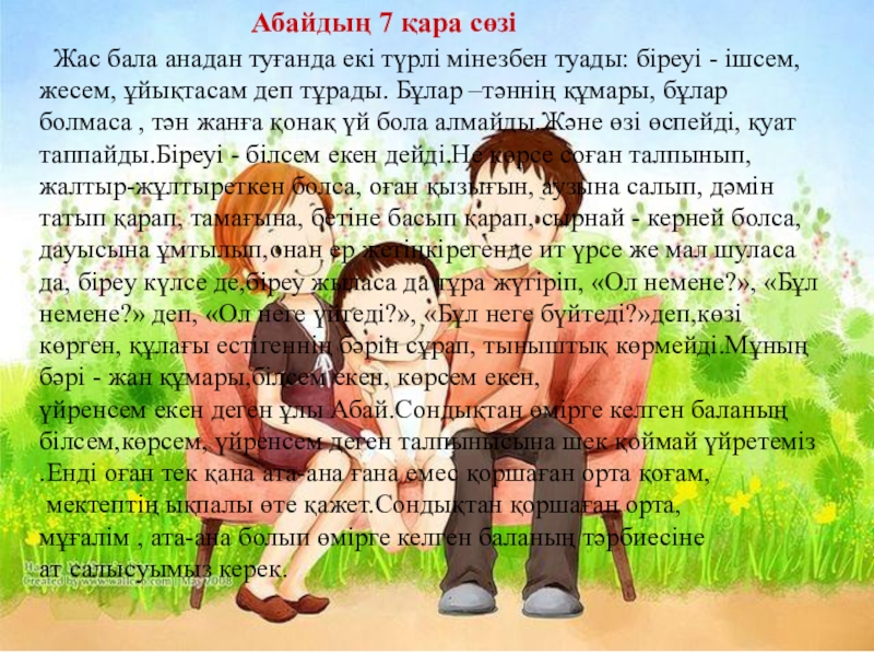 .Енді оған тек қана ата-ана ғана емес қоршаған орта қоғам,
