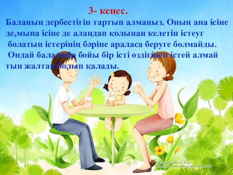Баланың ырқына жүгіре бермеңіз. Бала не талап қойса да елпілдеп, айтқанын да, айтпа-
