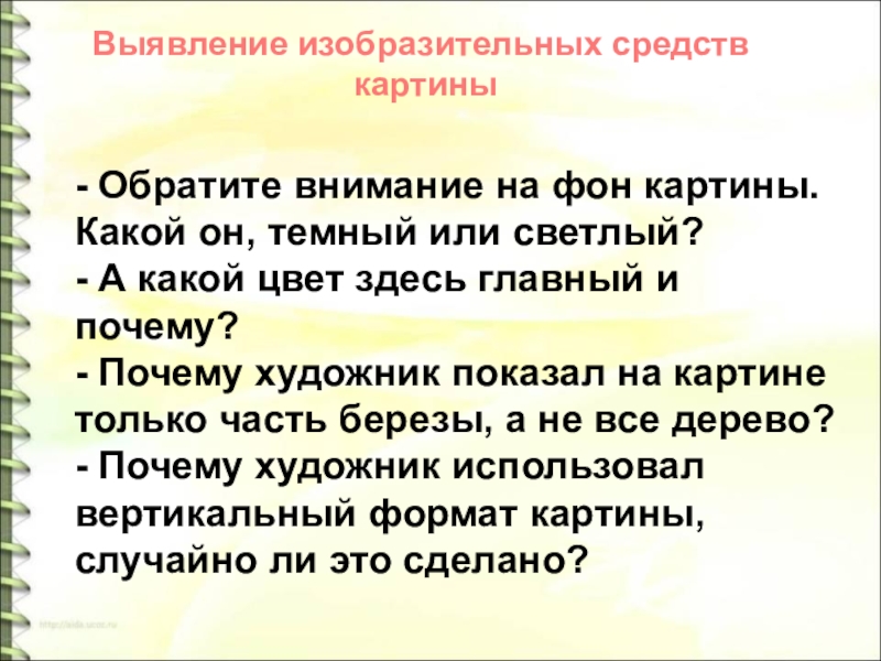 - Почему художник показал на картине только часть березы, а не все дерево?