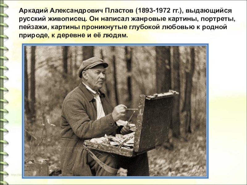 Слайд 4Аркадий Александрович Пластов (1893-1972 гг.), выдающийся русский живописец. Он написал жанровые