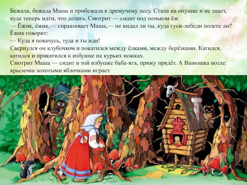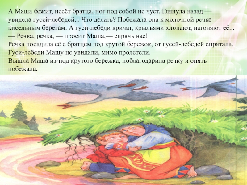 Слайд 10А Маша бежит, несёт братца, ног под собой не чует. Глянула