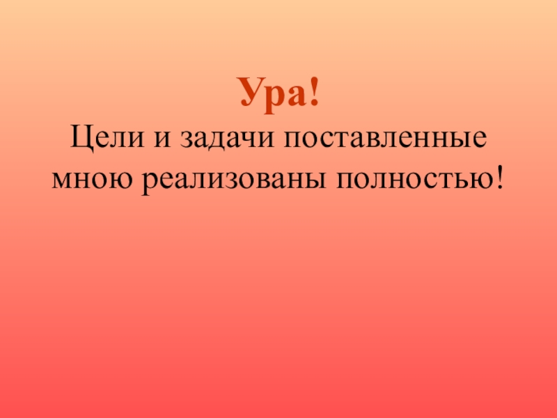 Слайд 14Ура! Цели и задачи поставленные мною реализованы полностью!