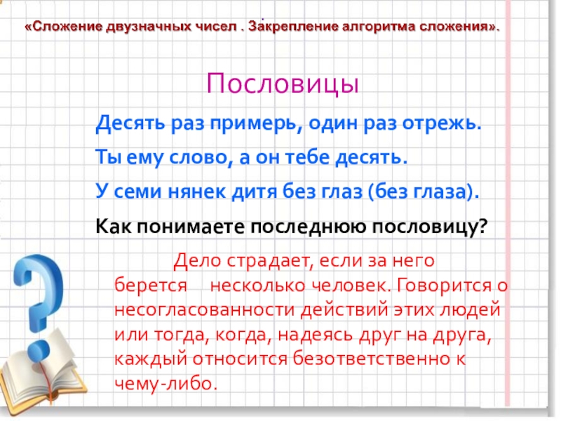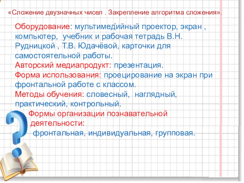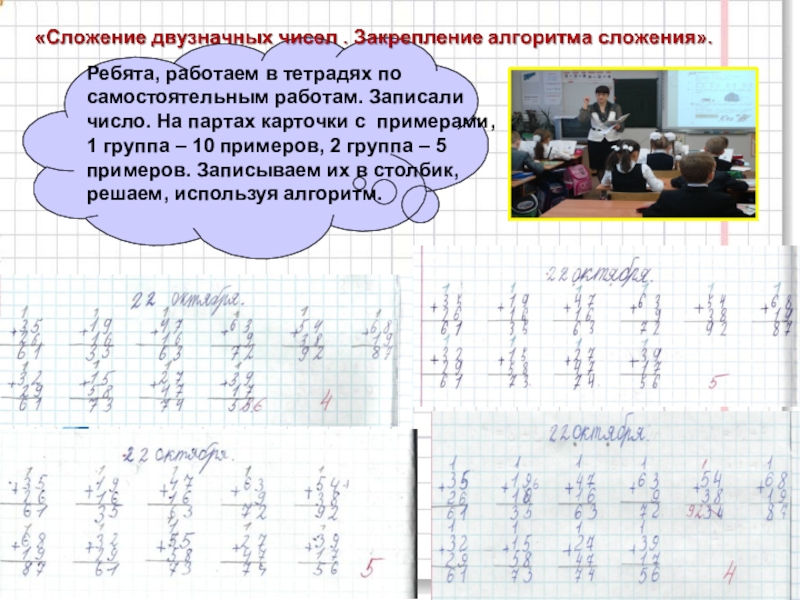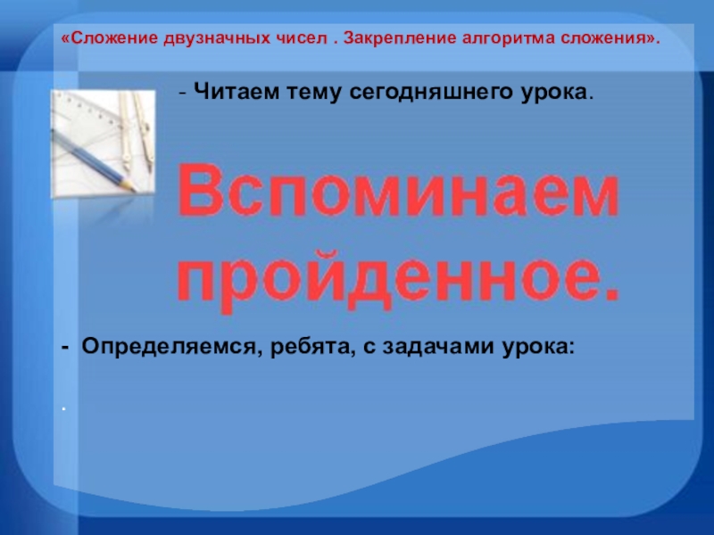 «Сложение двузначных чисел . Закрепление алгоритма сложения».