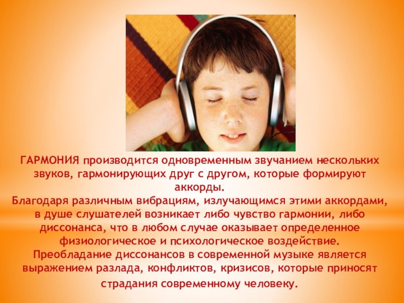 Слайд 22ГАРМОНИЯ производится одновременным звучанием нескольких звуков, гармонирующих друг с другом, которые