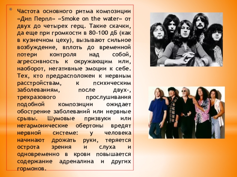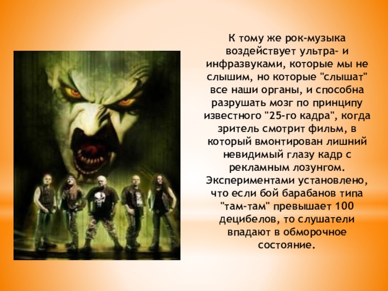 Слайд 26К тому же рок-музыка воздействует ультра- и инфразвуками, которые мы не