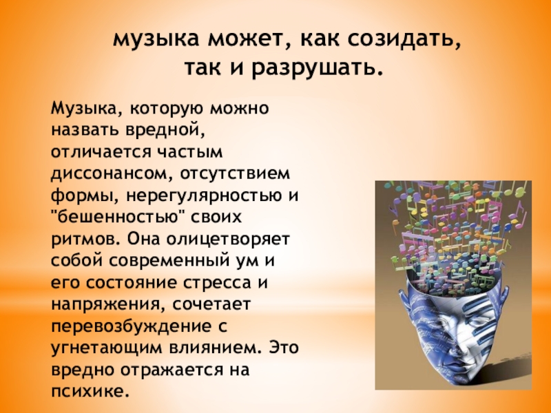 Слайд 25 музыка может, как созидать, так и разрушать.