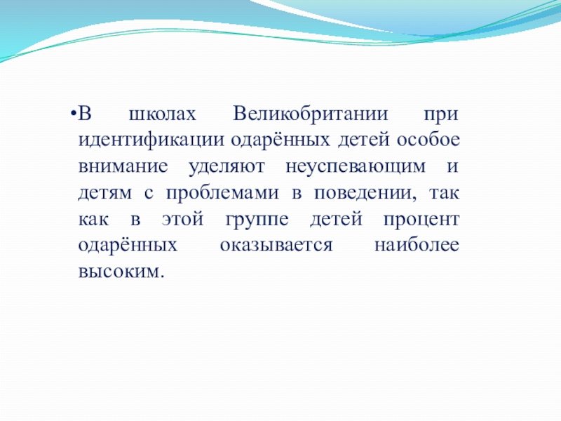 Слайд 8В школах Великобритании при идентификации одарённых детей особое внимание уделяют неуспевающим