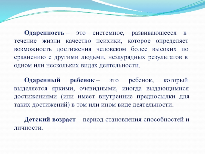 Одаренность – это системное, развивающееся в течение жизни качество психики, которое определяет возможность достижения человеком более высоких по
