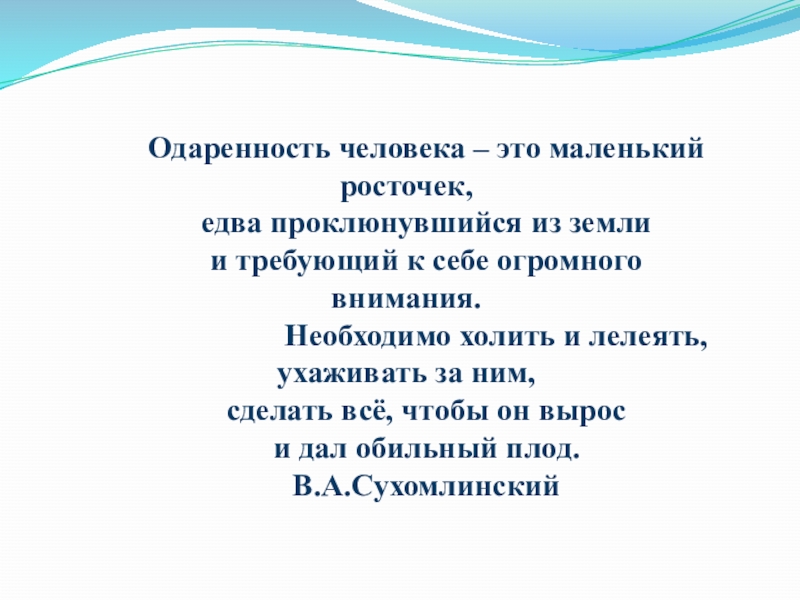 Слайд 2Одаренность человека – это маленький росточек,