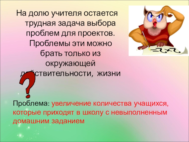Проблема: увеличение количества учащихся, которые приходят в школу с невыполненным домашним заданием