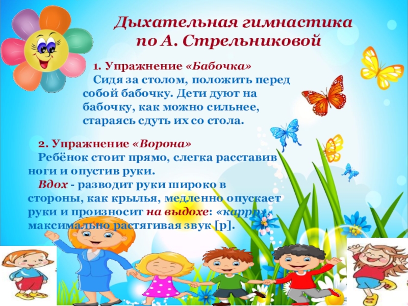 Вдох - разводит руки широко в стороны, как крылья, медленно опускает руки и произносит на выдохе: «каррр», максимально растягивая звук [р].