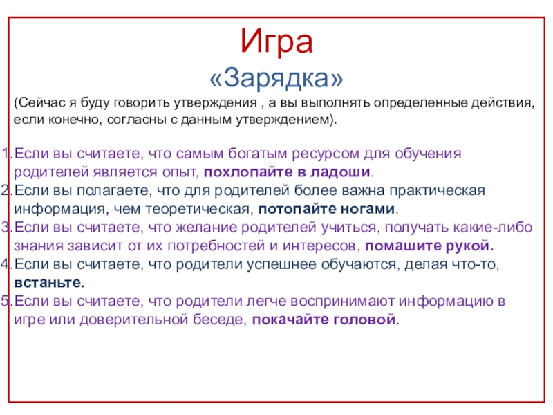 Если вы считаете, что родители легче воспринимают информацию в игре или доверительной беседе, покачайте головой.
