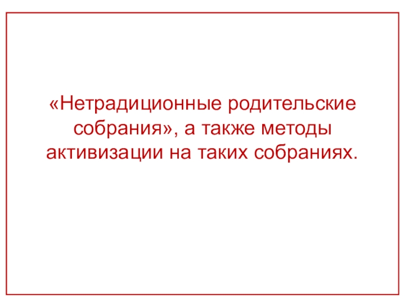 «Нетрадиционные родительские собрания», а также методы активизации на таких собраниях.