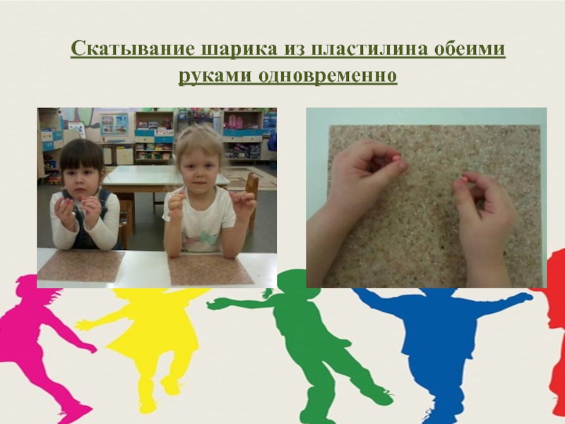 Слайд 17Скатывание шарика из пластилина обеими руками одновременно