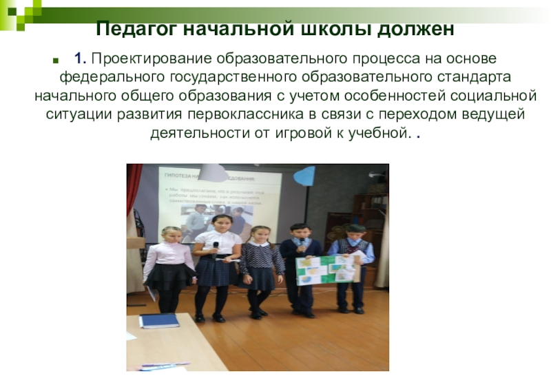 Педагог начальной школы должен 1. Проектирование образовательного процесса на основе федерального государственного образовательного стандарта начального общего образования