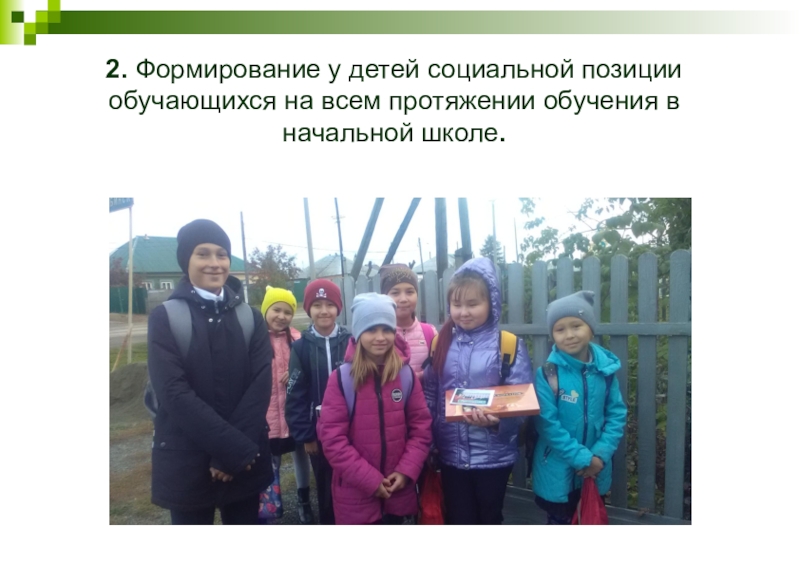 2. Формирование у детей социальной позиции обучающихся на всем протяжении обучения в начальной школе.